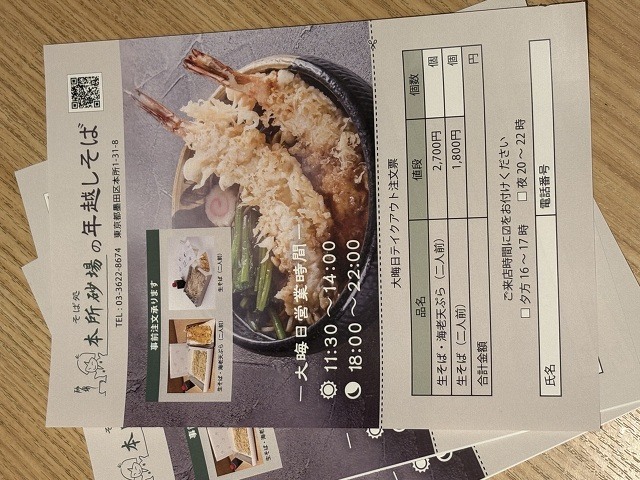 (晦日蕎麦引き渡し時間20時〜22時)