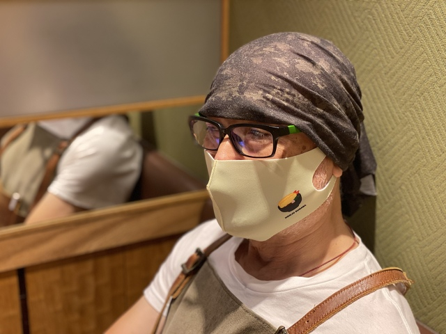 砂場オリジナルマスクで記念写真の