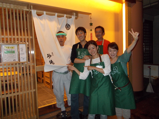 今回特に拘りました間接照明で昼と夜の砂場の雰囲気が変えられ、お料理はより美味しそうに、女性はより美しく照らしますから居心地満点ですよ。壁には和紙の市松と左奥には壁に合わせた市松デザインの鏡を貼り広がりを持たせました。営業時間も10時までとなり毎晩大小宴会のご予約を頂いております。一品料理のメニューもご好評頂いております。是非ご家族・お友達といらして下さい。心からお待ちしております。