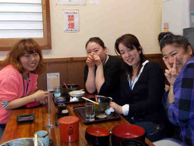 本所砂場はどこから見ても純下町の蕎麦屋。おかげ様で女性の団体様も気兼ねなくお越し頂けます。そして今日の彼女たちはいつもわいわい賑やか。「さあー!食べるぞー!」的な仕事から速攻気持ち切り替え昼タイム笑顔。人数も倍は居る錯覚によく陥ります。
