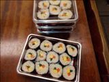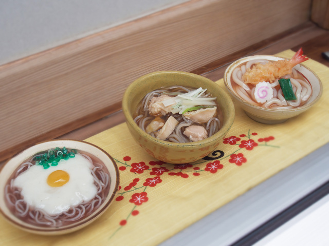 寿司酢をまぶした蕎麦ににんじん・たまご焼き・ほうれん草・薬味を散らし丁寧に海苔巻きにします。
