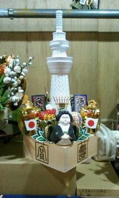 写真は酉の市で売っていたスカイツリー付きの置物。
